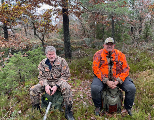Aspirant Kjell Sollie og hundefører Tor Olav Stiansen koser seg mens hunden er ute i søk