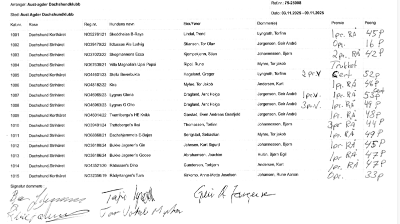 Årets Ordinære drevprøve 2025 – Aust-Agder Dachshund Klubb