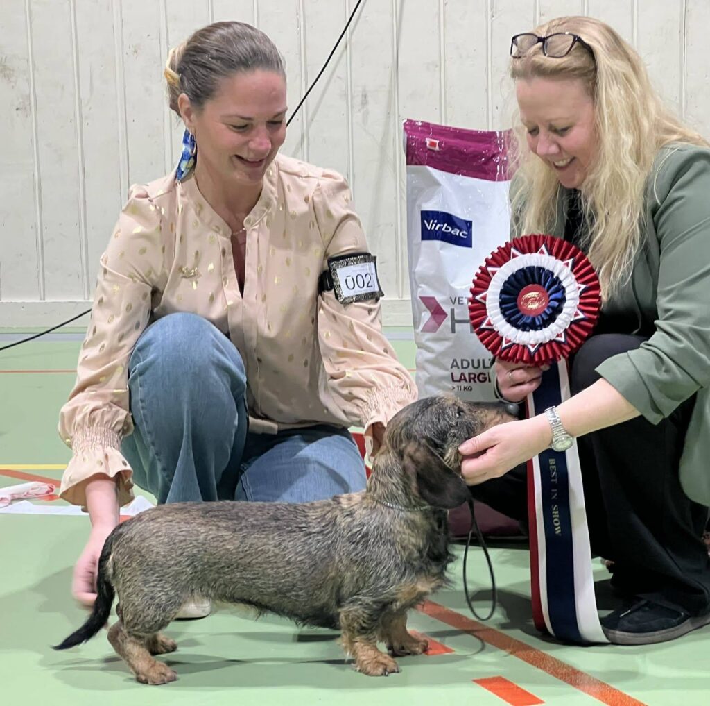 Vi håper alle hadde en trivelig dag – både to- og firbeinte. Resultater og bedømmelser er selvfølgelig viktige, men fellesskapet rundt dachshunden betyr minst like mye. Det å møtes, dele erfaringer og heie på hverandre er en stor del av det som gjør disse utstillingene så hyggelige. Det er noe helt spesielt med å være samlet med andre dachshundeiere – vi deler samme entusiasme og stolthet for dachshunden vår. Resultater fra Aust-Agderringen ble som følger: